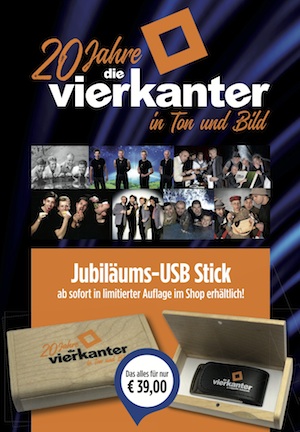 „20 Jahre DIE VIERKANTER in Ton und Bild“ in edlem Design:- ALLE Titel der 10 CD’s die wir im Lauf dieser Zeit veröffentlicht haben als MP3-Files